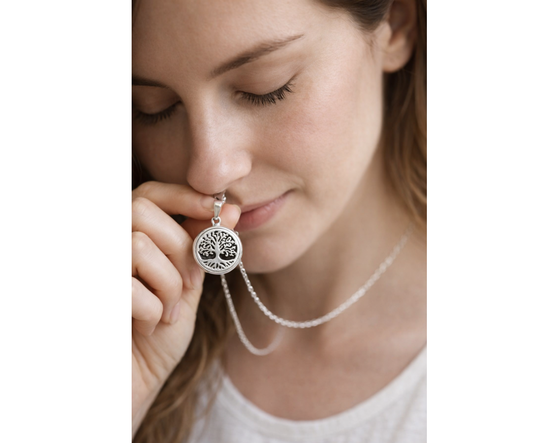 Su diseño discreto y elegante lo convierte en el compañero ideal para el día a día, el trabajo, la meditación o los momentos de autocuidado. Solo necesitas aplicar unas gotas de tu aceite esencial favorito en el interior del colgante y dejar que el aroma actúe a través del olfato, conectando directamente con el sistema límbico, responsable de las emociones y la relajación.
